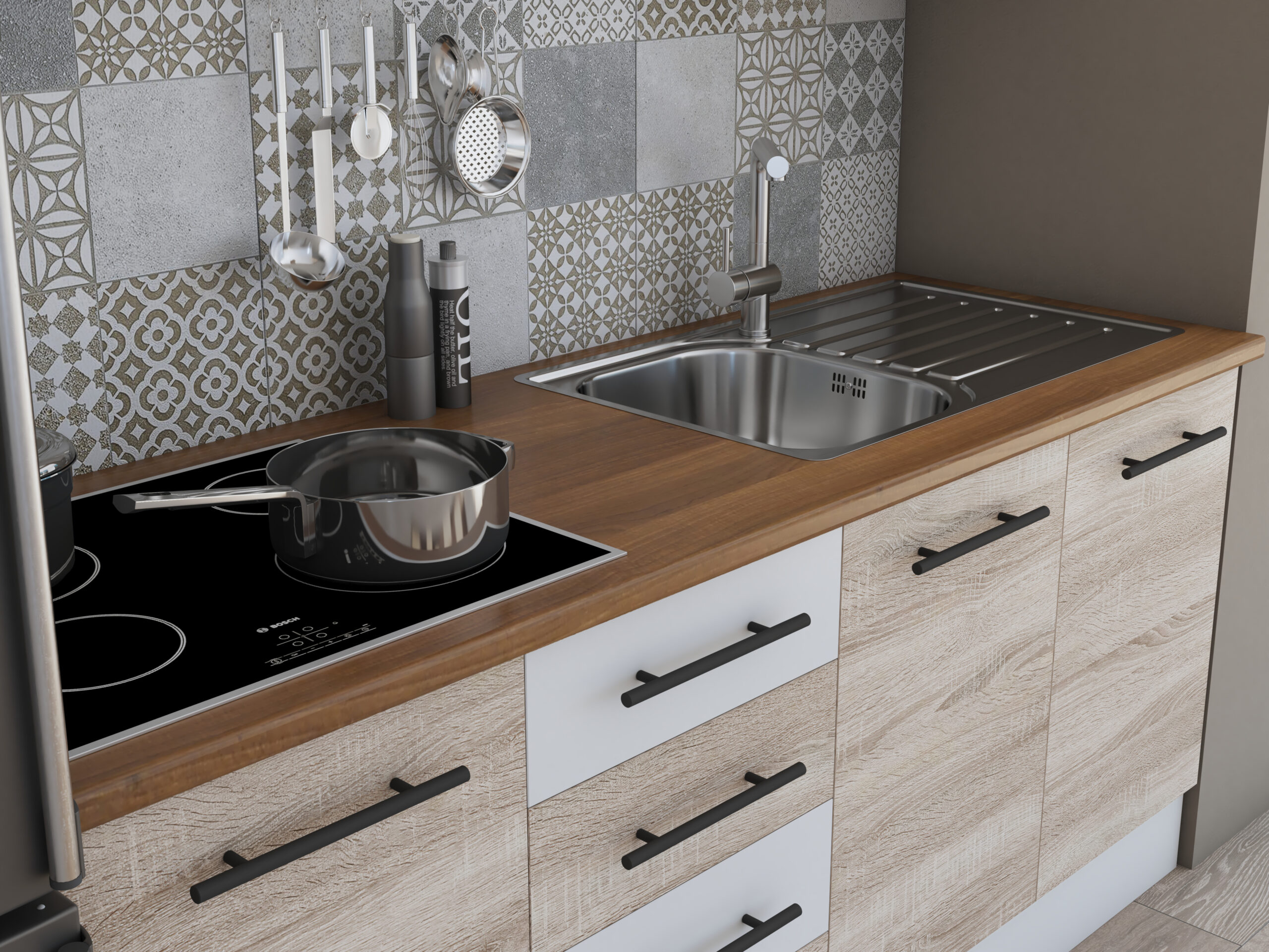 Bucataria Alfa 180, aceasta este produsa in Romania iar materialele folosite sunt special create pentru a rezista la conditii extreme, umezeala si zgarieturi.